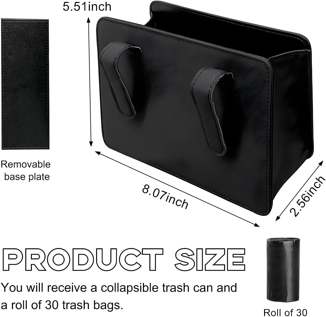 - 【Foldable & Portable】: It is a three-dimensional trash can when you unfold this product, and it is only a 8.07 x 5.51 inches rectangular panel. When you don’t need to use it, a random crevice in your car will be able to store it without taking up too much space.
