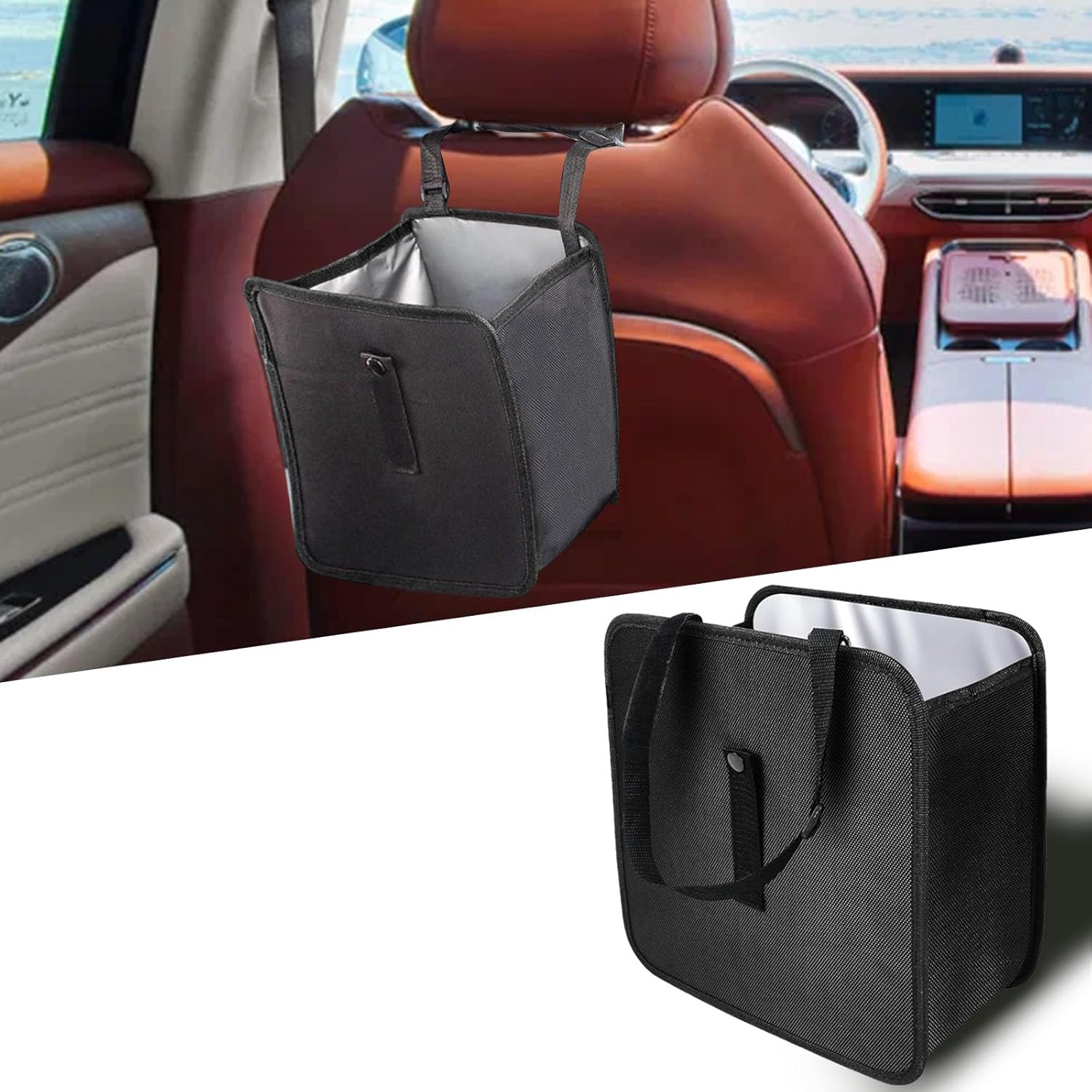 - 【Leakproof Waterproof Oxford Cloth】: Durable Oxford cloth car garbage bag is leakproof and waterproof, it can provide great strength and long service life. You can use it directly for your trash, or you can put a plastic trash bag in it. The hanging strap of the trash bag is strong enough to secure the trash can stable next to your seat.
