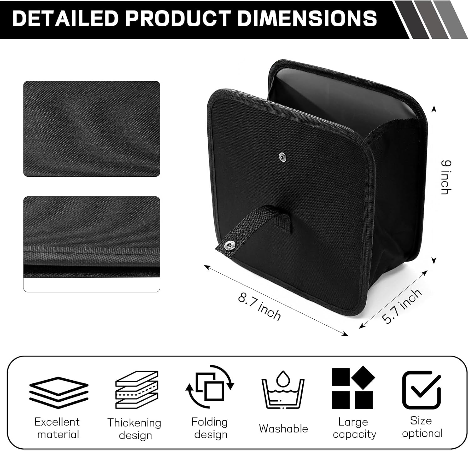 - 【Multiple Usage Scenarios】: There are two sizes of trash cans, small and large, they are 8.67 × 9.1 × 5.7 inches and 10.6 × 10.6 × 5.7 inches, so please buy them according to your needs. They are widely suitable for all kinds of vehicles, not only for use while driving, but also for camping, home, den or office.